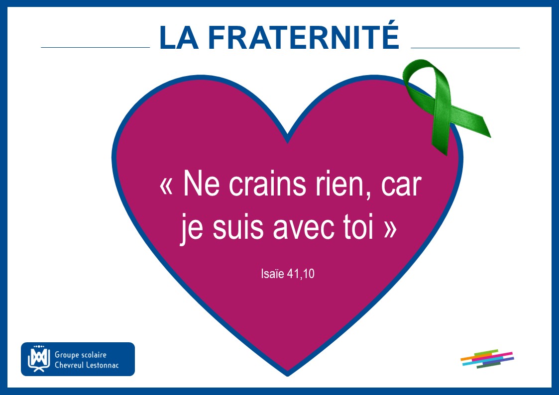 Au préalable, pour rentrer dans cette quinzaine, des visuels ont été affichés sur toutes les portes des classes : des phrases illustrant la fraternité, tirées de la bible, de Fratello tutti ou des Eco-Béatitudes. Elles sont accessibles en cliquant ici.