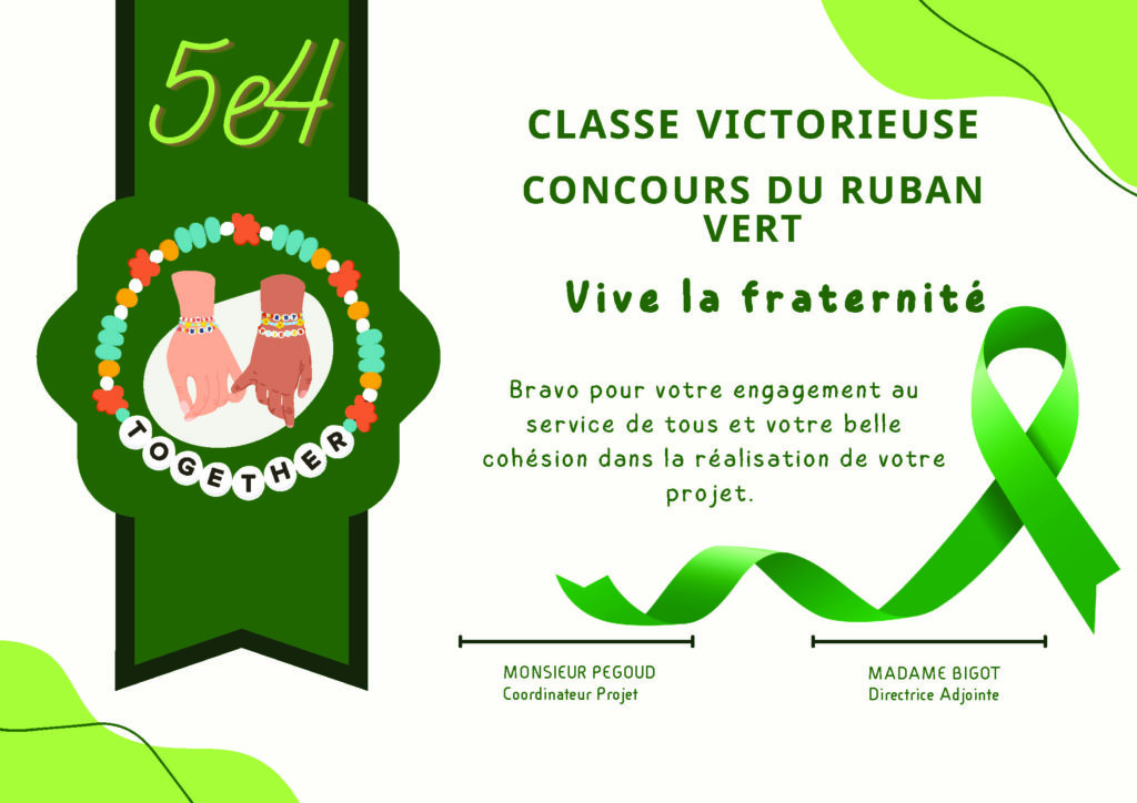 Depuis la rentrée de novembre, une « Quinzaine de la fraternité », symbolisée par le ruban vert, s’est déployée au collège Lestonnac. L’objectif etait simple : inviter chaque élève à réfléchir à la manière de mieux vivre ensemble et encourager des engagements concrets pour un climat scolaire plus serein.