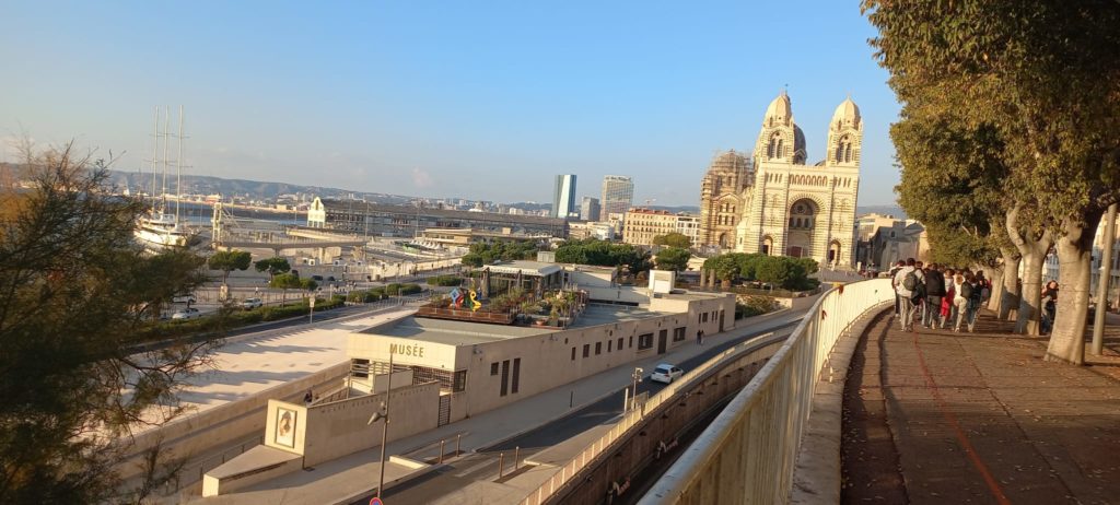 Le reste de la journée était consacré à la découverte de quelques sites emblématiques de la ville de Marseille. Après une balade sur le Vieux-Port, le groupe a visité la Cathédrale Major. Depuis le port, les élèves ont profité d’une vue privilégiée sur Notre-Dame de la Garde, une partie de la ville, les îles du Frioul et la Méditerranée. Ce panorama leur a permis de mieux comprendre la structure de Marseille, son étendue et son rapport constant à la mer.